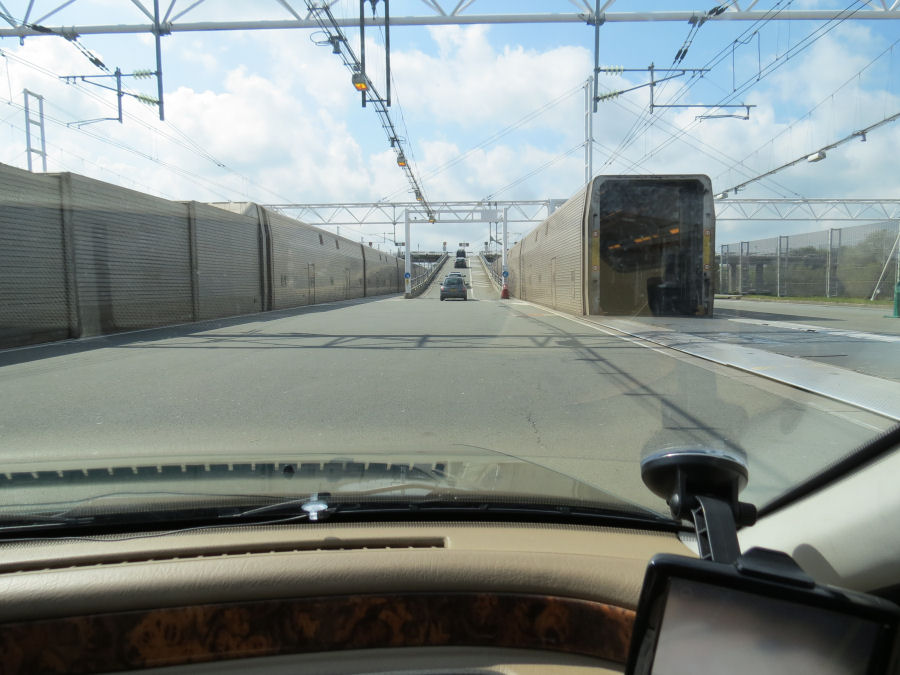 Vi kör av tunneltåget i Frankrike