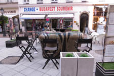 Efter frukosten packade vi omsorgsfullt och fick in våra väskor i hotellets förråd för senare avhämtning. Sedan gav vi oss ut på stan. Tog den museala tunnelbanan in och vandrade sakta bort mot Saluhallen där vi tog en fika. När vi satt där dök vännerna Lennart och Katarina upp med Eva Heyman med make i släptåg. Lennart och Katarina berättade att de skulle ta spårvagnen ut till ett av de många judeminnesmärken i Budapest och frågade oss hur man hittade till denna spårvagn.