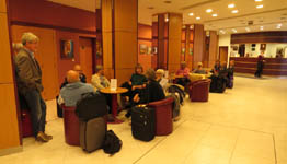 Där fick vi vänta någon timma innan det var dags för bussturen ut till flygplatsen.